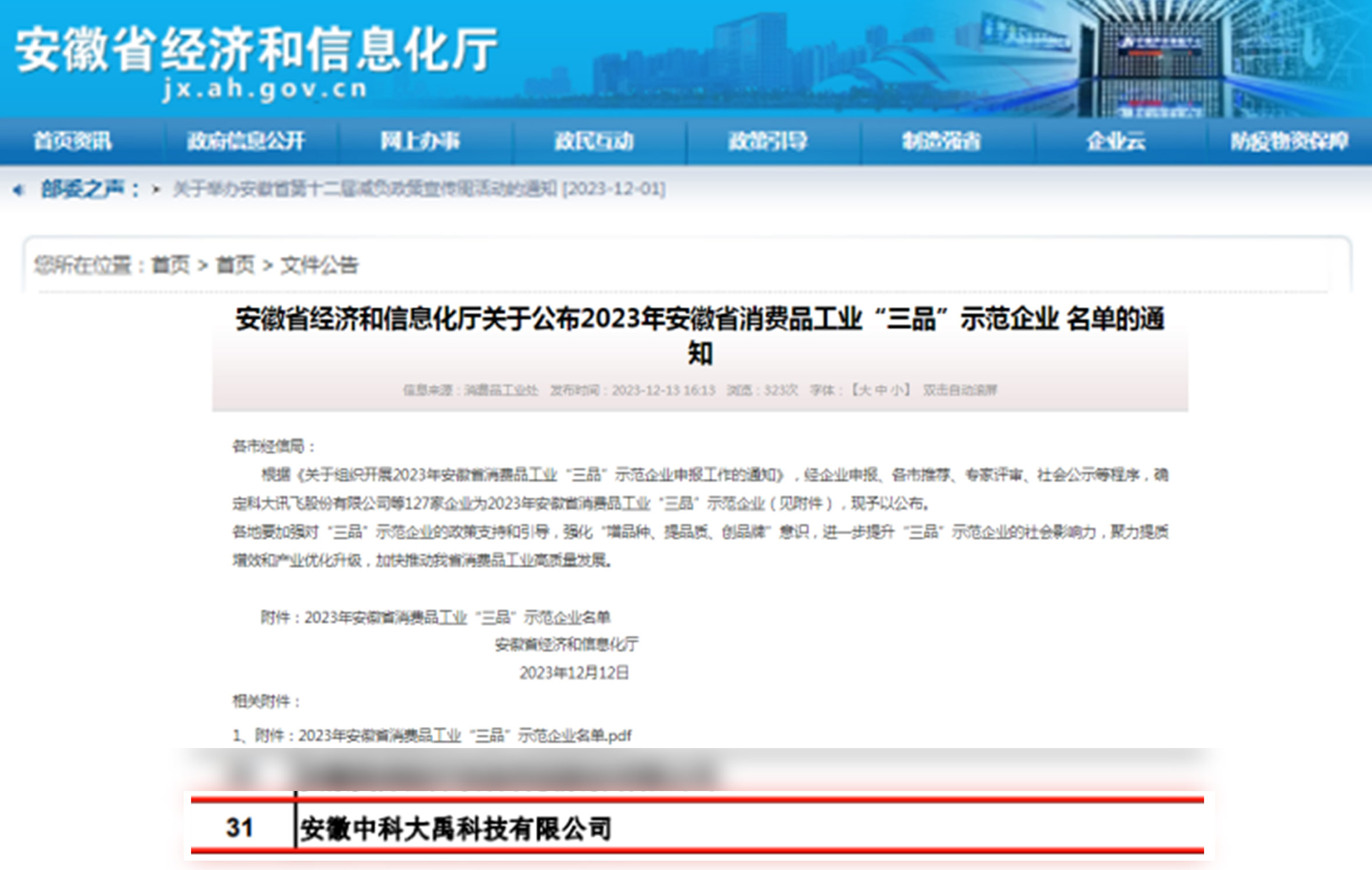 • 入選2023年安徽省消費(fèi)品工業(yè)“三品”示范企業(yè)