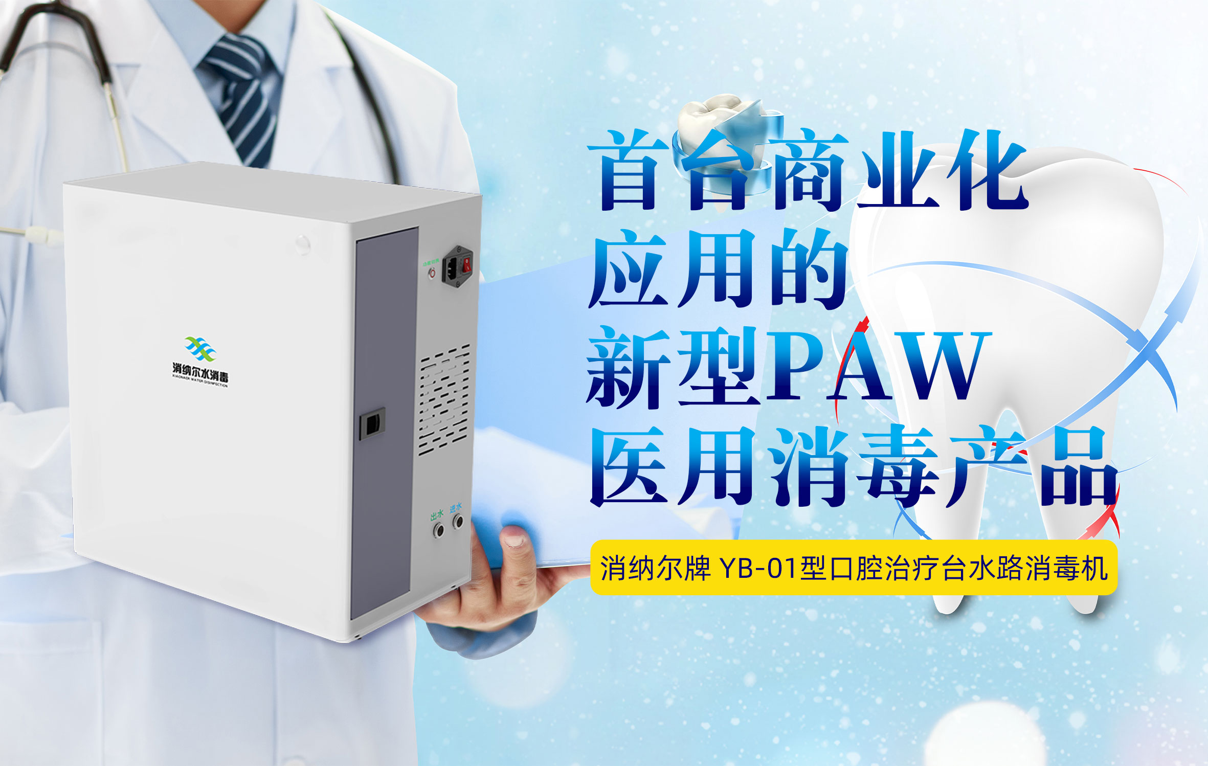 • 首臺(tái)商業(yè)化應(yīng)用的新型 PAW 醫(yī)用消毒產(chǎn)品,消納爾牌口腔治療臺(tái)水路消毒機(jī)